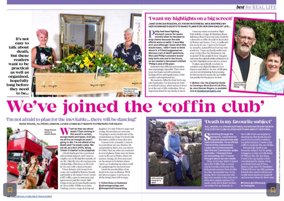 , myself, and the two Kates from The Coffin Club talking about what they want for this finale in their lives. Great piece. Thanks Kim Willis.