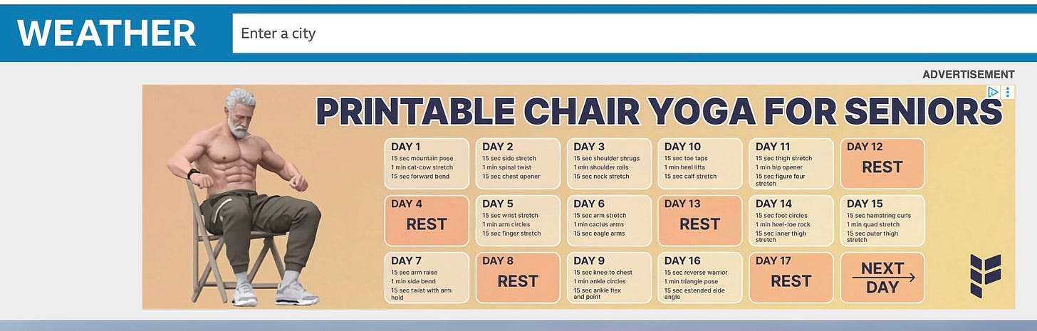 4. One of our members posted this image with a question about how older people are represented. In this case, an older man who looks like he works out a lot doing chair yoga looks incongruous. We laughed about it. And a few men said they might look at chair yoga as an option!