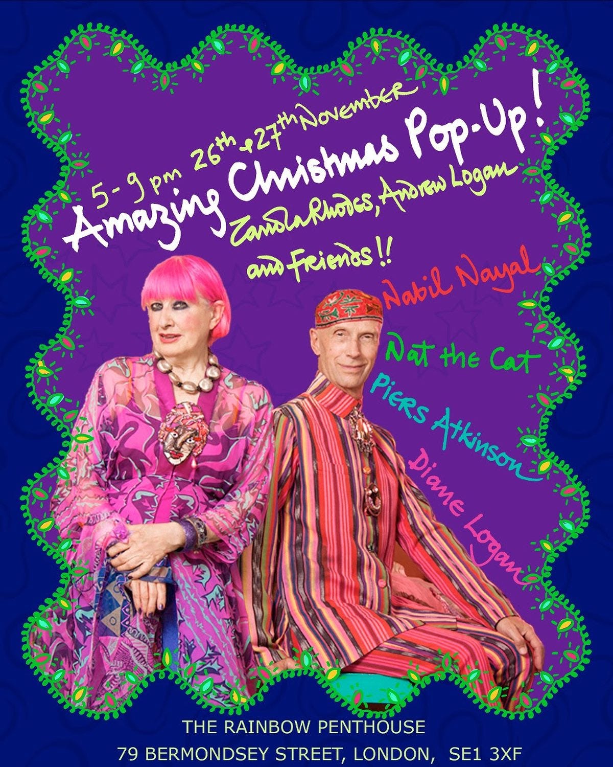 Zandra Rhodes and Andrew Logan do this brilliant Xmas pop up every year. And it’s in Zandra’s penthouse flat. It’s wonderful to go to. Sure the AofA crew will be going on one of the days.