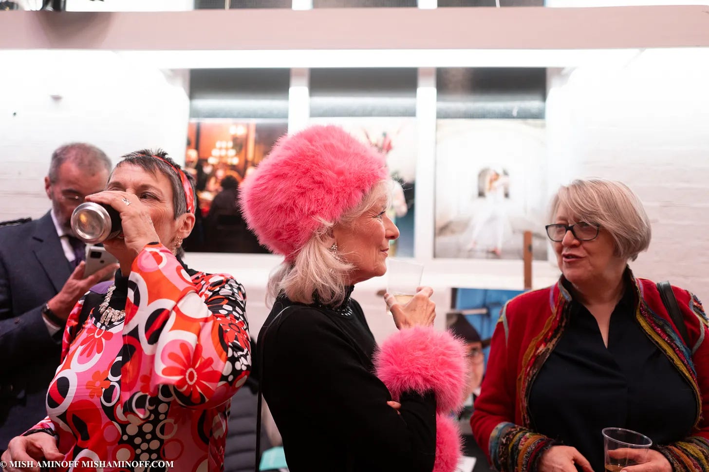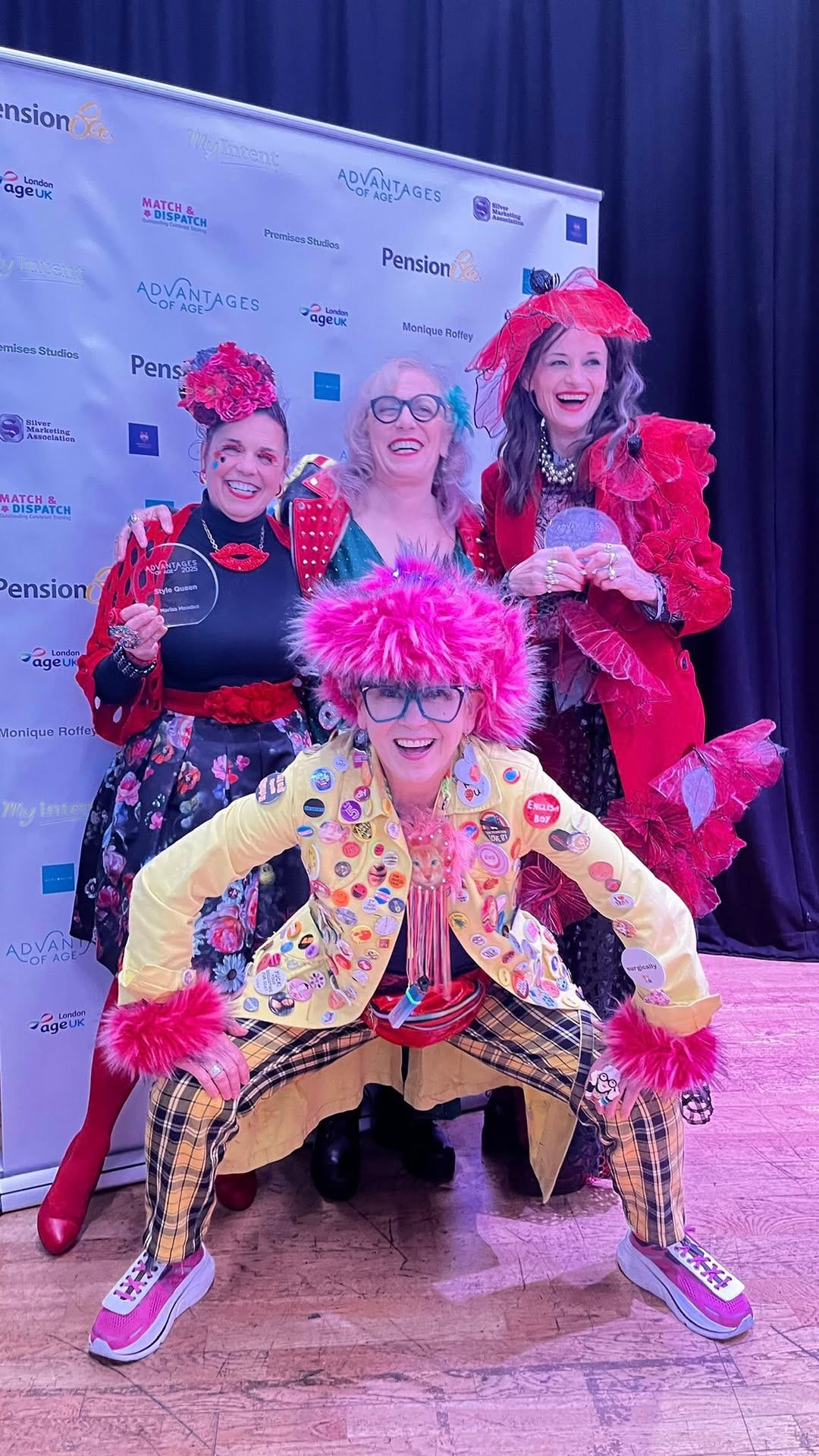 (in the middle with the marvellous pink fake fur hat) who wrote and performed the song We Celebrate You especially for the awards. And in the background is Mish’s exhibition That’s The Spirit with photographs of older people who are emanating spiritedness!! Yes to that.