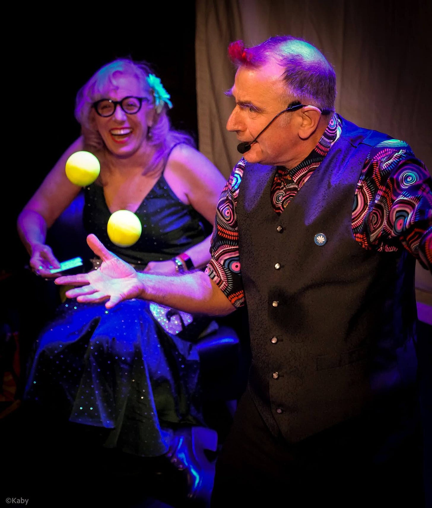 What a photo by Richard Kaby of the utterly punkish and charming juggler, Ben Cornish. He enchanted us and made us laugh. Look at Suzanne! And there were some interesting juggling terminology - the snatch and grab, the reverse cascade. Oh that Ben has 35 years experience! Book him for your celebration!