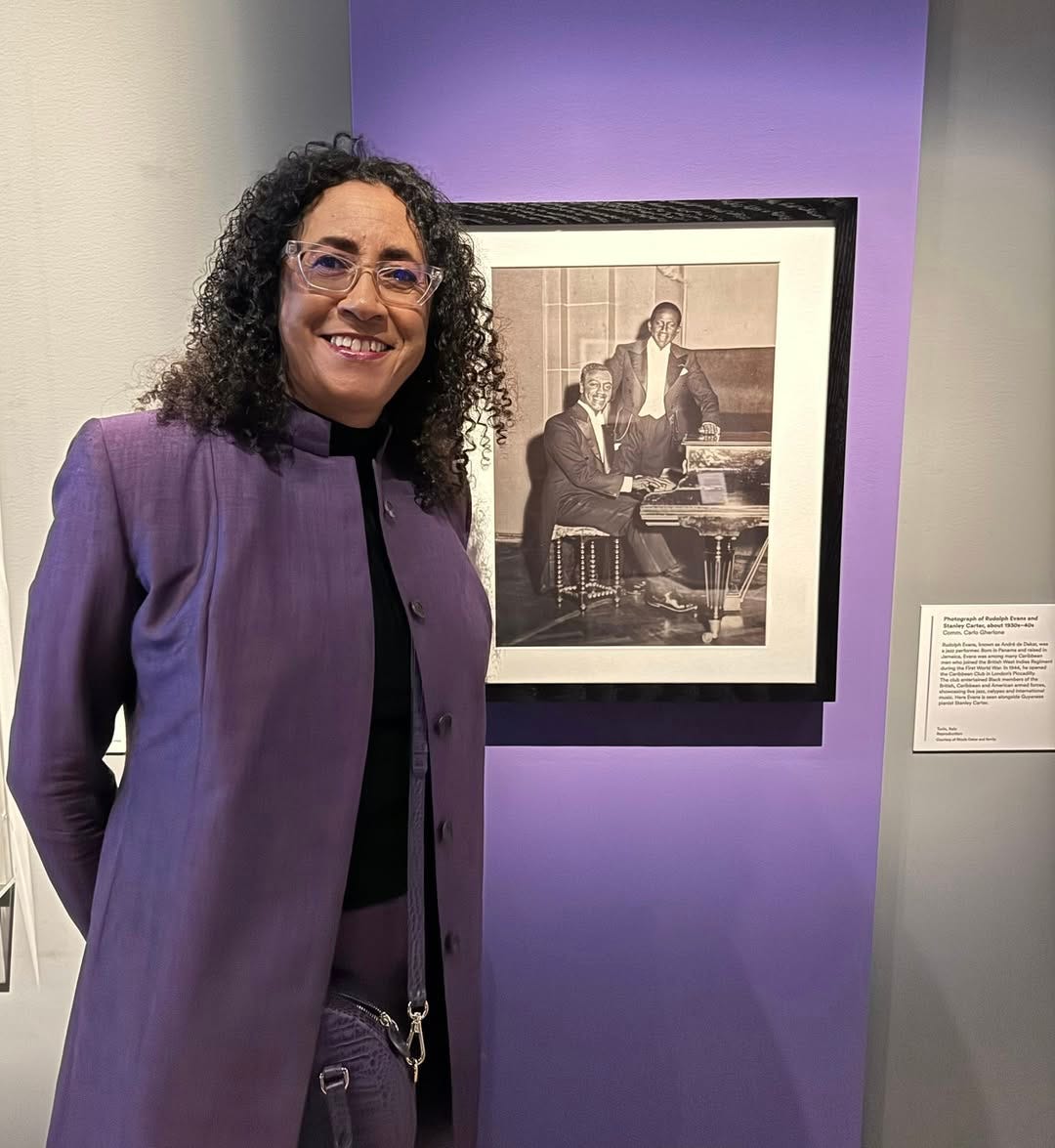 3. Singer, Rhoda Dakar tells the story of her visit to Music is Black, a new exhibition at the V&A. ‘I went to ‘The Music Is Black’ at the new Victoria and Albert Museum East with my son, Frenchhh (aka Parizien). His first audible gasp was seeing a photo that lives on the wall in our front room reproduced in a museum! The fact that my Marc Griffith London suit perfectly matched the background was kismet! My dad died before my children were born, so these snippets are what they have to know him by.’