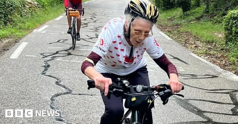 ‘An 82-year-old grandmother has taken on one of the Tour de France’s most famous mountains to raise funds for aid to Gaza.