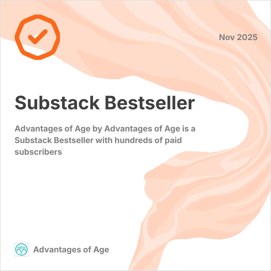 6. And finally we were thrilled with the news that Advantages of Age is now a Substack Bestseller, that means paying subscription have gone higher than 100. Thanks to all of you who support us in this way. Amazing.