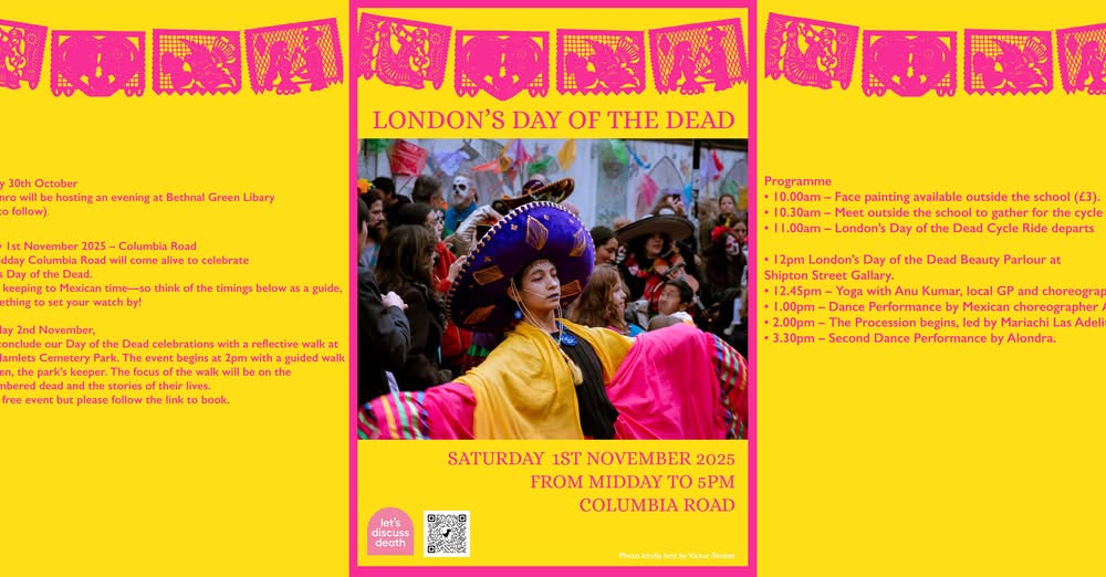 Well it’s All Hallow’s Eve and what are you up to? Are you being spooky or ignoring the whole thing. I’m off to the Day of the Dead celebrations and procession down Columbia Rd, London starting at 12 pm.