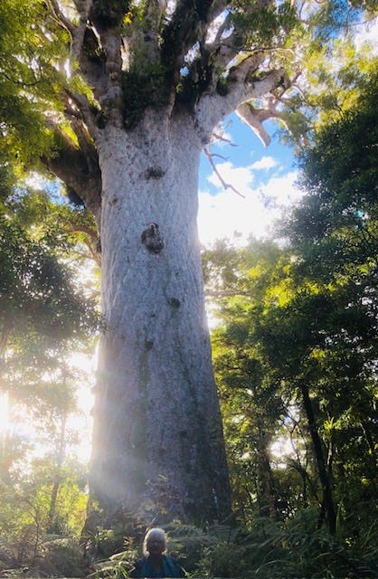 When our circle ended, I found her and asked if she could tell me the name and as she said Tane Mahuta. I began to cry, with no idea why. As she went on to tell me that the name meant Lord of the Forest and that he is both an atua (God) in Maori cosmology and a mighty kauri tree in the Northland of New Zealand/Aotearoa. I continued to cry, and I knew that I had to visit him. When I put the name Tane Mahuta into the search engine on my phone later, an article from The Guardian appeared. It had the headline The tree that makes people cry.