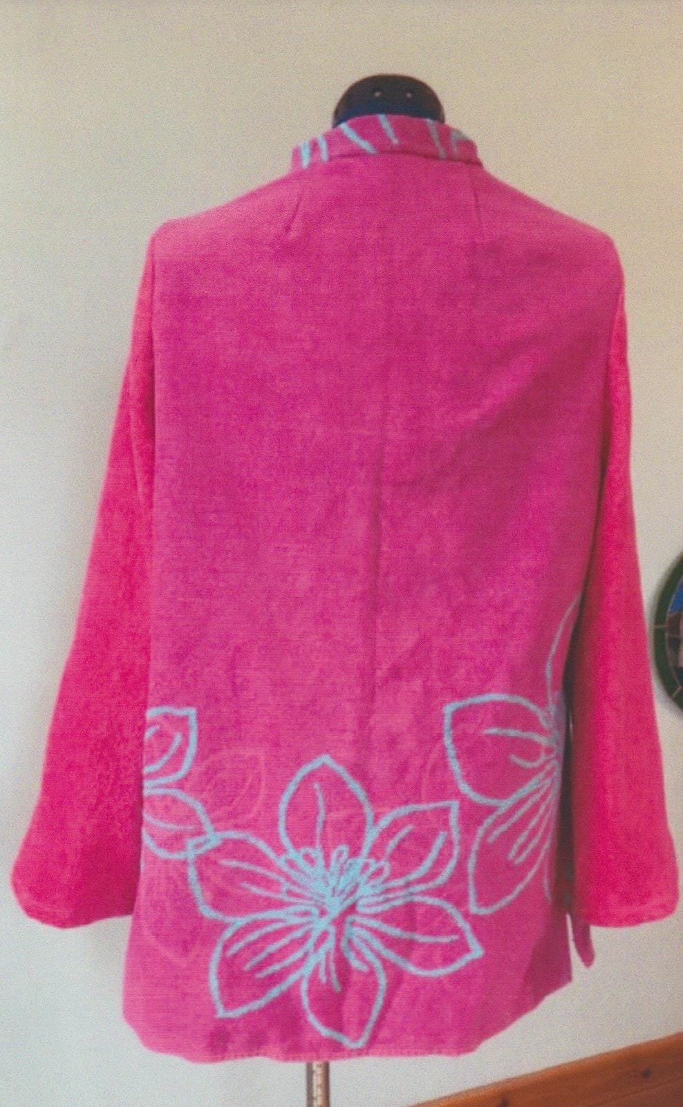 I made a sensible variation of the first 19 of 24 challenges from that year’s series. I figured it would give me a masterclass in working with new fabrics, upcycling/transformation (“the shit-to-shit” challenge as friends and I call it) and new techniques. Few of the things I made were out-and-out disasters although the mac made from a vinyl tablecloth springs to mind. Sewing it was like tugging a hippopotamus through a narrow gap on the hottest day of the year. And some have been eminently-saleable donations – like a wearable garment made from beach towels and a Bolivian milkmaid’s jacket from a scrap of velvet and the legs from some harem pants.