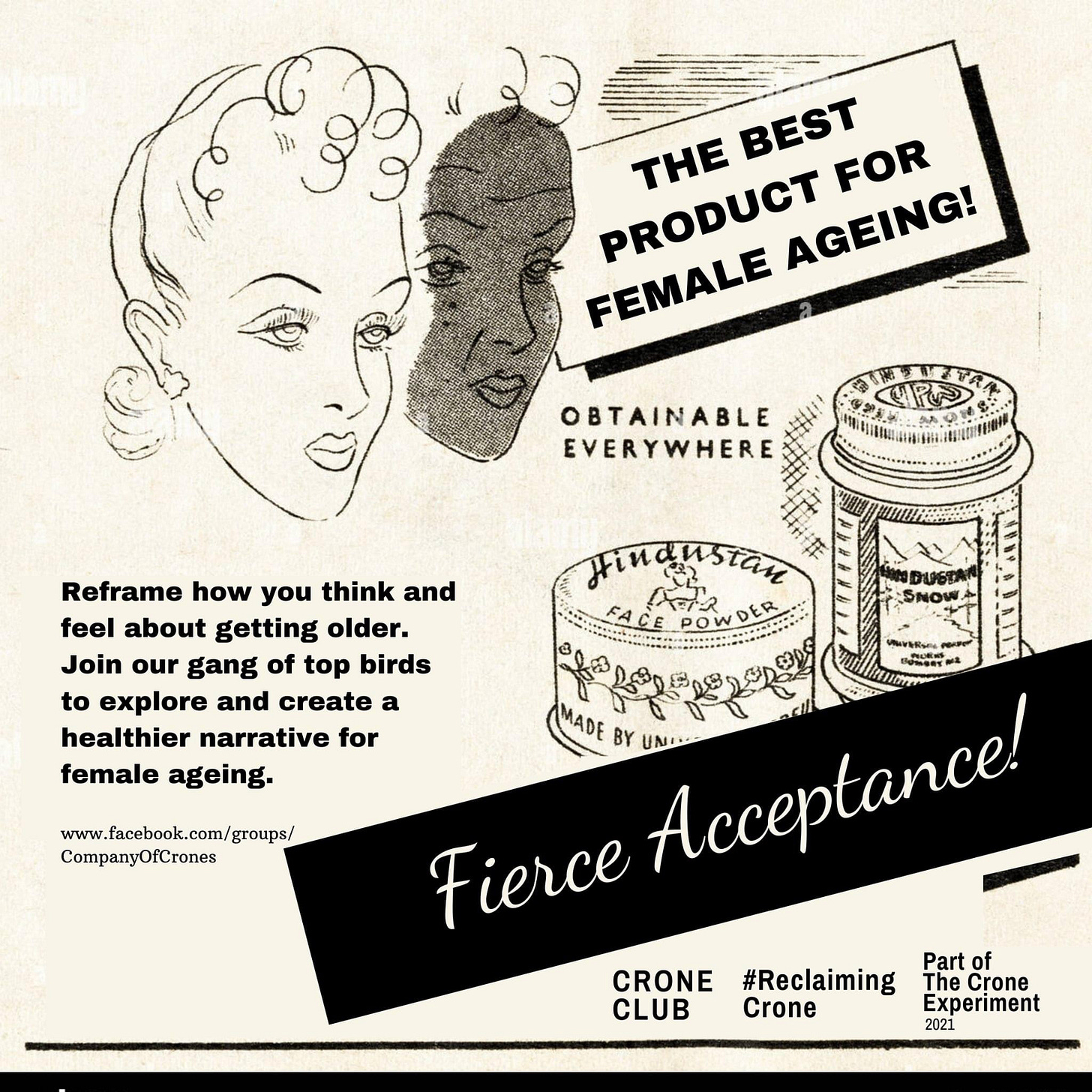 First call for members of the Crone Club’s Facebook group, 2021.