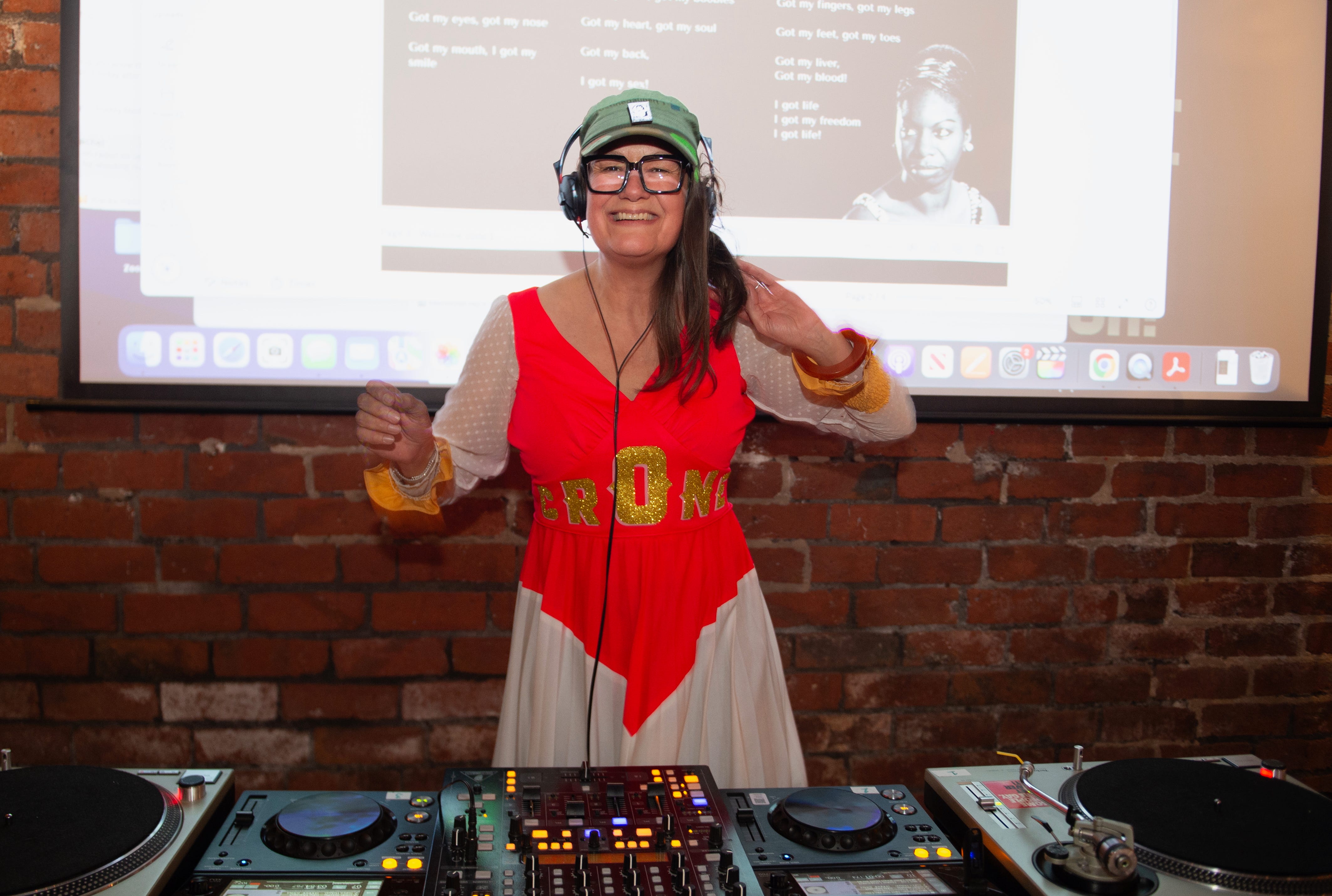 The Facebook group of 10 fearful perimenopausal mates now comprises over 850 older women from all around the world. We run events such as the Crone Spoken Library in partnership with the University of Sheffield, and last year’s sell out event ‘CroneLines’ - an afternoon nightclub for perimenopausal and postmenopausal women. All the DJs were women in midlife and beyond (some DJing for the first time!) playing iconic female artists from across the generations from Nina Simone to The Pretenders to The Slits and of course, queen of the crones, Dolly Parton.