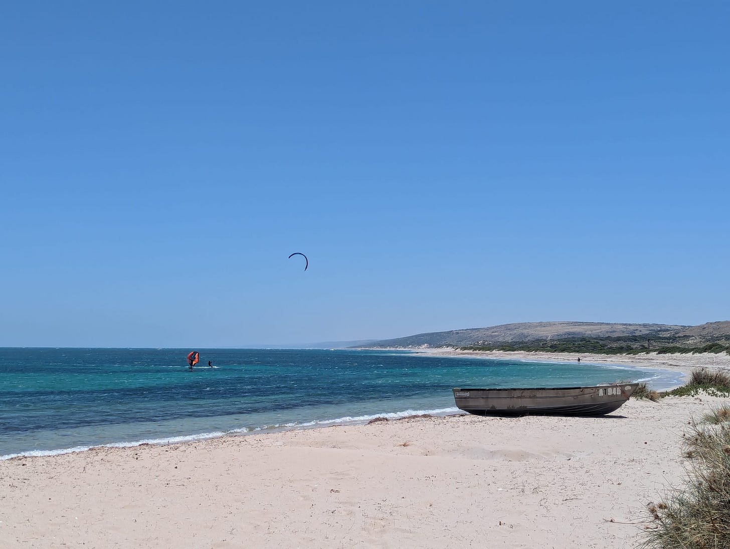 My cousin took me to the lovely local windsurfer beach every day, in the company of his highly intelligent and sensitive little dog, a Jack Russell terrier called Ella, who I bonded with massively while I was there. The beach was a rather special place, with a casual friendly community feel, a few camper vans and the occasional food truck. There were local friends there and also friends from all over the world too, who go there for a few weeks every year to windsurf in the perfect wave conditions.